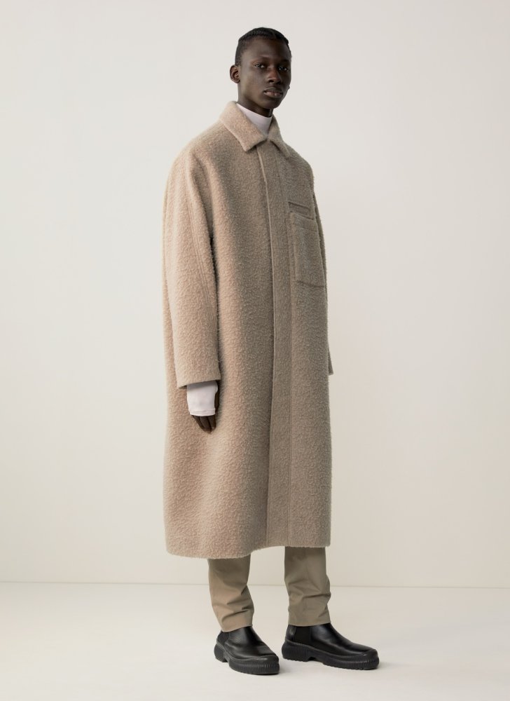 外套上,羊毛过膝大衣保暖且不浮夸。而实用的口袋成了整件大衣最不可或缺的设计。