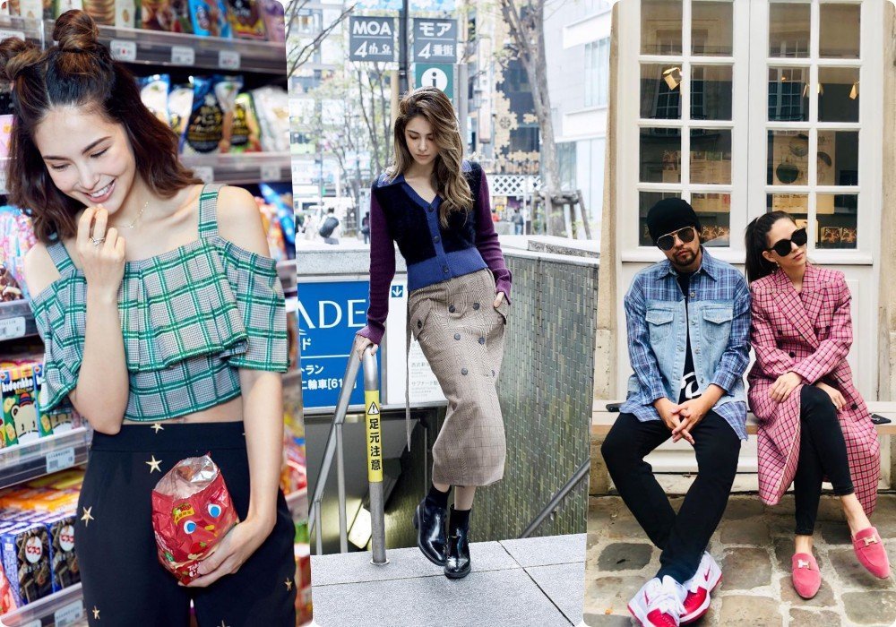 格纹系列的不同单品、不同颜色及样式都会改变整体风格。格纹衬衫作为穿搭主角,偶尔露个肩或搭配小包包,又是女人味爆棚的一天。昆凌不只有格纹上衣,偶尔也会看到格纹裙装的出现。A字格纹长裙加上两排扣子点缀,修身且不单调。再来,昆凌身上桃红色格纹外套和周董身上的蓝靛色格纹衬衫,一不小心又给粉丝们喂了一大把狗粮。情侣们,明星同款情侣装你get到了吗!