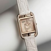 首款至臻时计 (Chapter 1 | RM10,688) 的表壳和表带均采用松石绿色高科技陶瓷打造而成,顺滑流畅的一体成型表壳,与内嵌的珍珠母贝表盘交相辉映;花丝配以景泰蓝元素,与茉莉花图案及以自然为灵感的图饰相融,在玫瑰金色的指针下,恣意绽放着和谐融洽之美。每个刻度上均镶有一颗威塞尔顿钻石,搭配双面防眩目弧形蓝宝石表镜。钛金属底盖配有烟色蓝宝石镜面,同时加开了一个小窗口,能够一睹 Rado R763 自动机械机芯的律动之美。