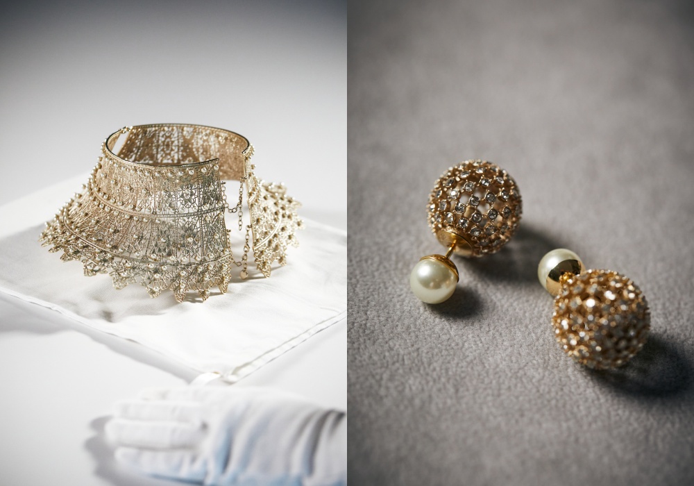 看起来精致奢华的宝石首饰难免让人有种“太重”的感觉;Dior D-Renaissance 就不一样了,运用蕾丝设计搭配珍珠和树脂珠饰,带来轻盈而梦幻的氛围。