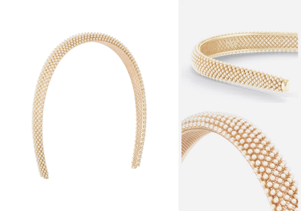 仙女风格的小姐姐必备! D-Renaissance 发饰是一款别致优雅的单品,彰显 Dior 的精湛工艺,采用金色饰面金属精心制作,通体饰以手工密镶的小号白色树脂珠饰。
