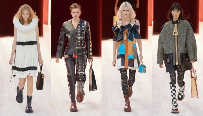 创意总监Nicolas Ghesquiere一直都在翻玩品牌的风格密码外,对于女性面貌也一再颠覆大家对女性的刻板印象。除了柔美、优雅之外,Nicolas更喜欢展现反叛型的女力精神,所以这一次特别强化了品牌经典细节,在服装展现出这些平日看似微小,但却是如此独特的存在。因此在服装上除了会看见拉链、锁头、扣子不断在衣裙上出现之外,还有的就是品牌完美的棋盘格纹、满版印花以及皱褶面料,以硬挺的版型诠释出超现实的风格,用视觉冲突的美感惊艳大家。