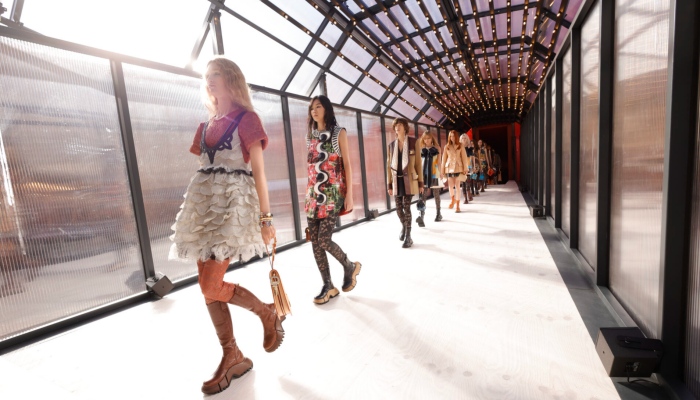 不得不承认现在的时装秀,除了拼设计之外,还要拼话题,所以时装周都让人期待当日出圈的优胜者是谁。Louis Vuitton 的秀场一直占尽话题榜,这一次的2023春夏系列也不例外,服装里的戏剧性点缀、对于女性力量的诉说,还有像掉进未来世界花园里的秀场设计,难免不禁叹,果然还是那个 Louis Vuitton。