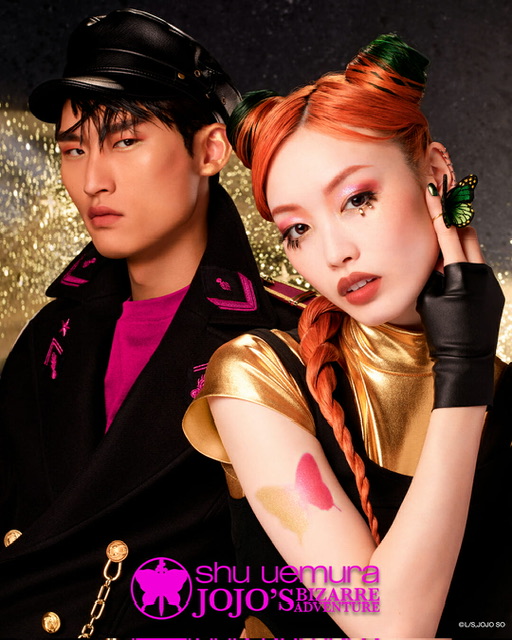 话说回来,品牌这几年的圣诞系列,都会与日本知名的动漫合作。今年品牌更是以Jojo’s Bizarre Adventure 动漫为主题,以女主角和他的父亲 Jotaro Gujoh 主轴,利用华丽的金色和桃红色,打造全新彩妆系列。
