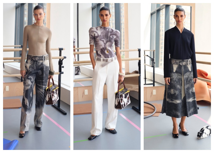 看了这次的2024的早春系列中,大家应该也发现在上衣、裙子和长裤中有着猫咪和兔子的身影。熟悉Tory Burch的人都知道她是个动物爱好者,所以这次也特别与87岁高龄的德国摄影师Walter Schels合作,捕捉了猫咪、兔子肖像并制成图案,转印到服装单品上,小动物的毛流、轮廓都能清晰可见,给人留下了强烈的记忆。