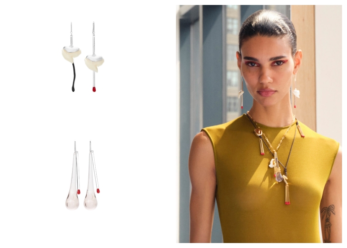 Torry Burch的早春系列首饰以树脂、金属材质,以抽象的线条呈现之外,最奇特的是点缀上了人造鲨鱼牙、衣夹和火柴,十分玩味;凸显了Tory Burch骨子里的幽默灵魂。