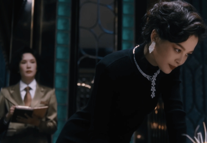 因此也代表着上海但是最时尚的年轻女郎。剧中她的装扮也紧跟着90年代的港风潮流,因此西装外套、领结衬衫、翻领大衣、高领上衣、贝雷帽、复古墨镜等是最常出现在她身上。首饰也多以优雅的珍珠为主,符合她的年龄和身份装扮。