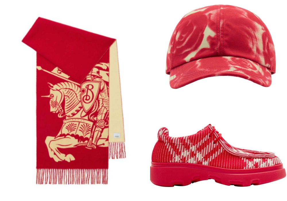 Burberry的新年系列虽然是为新年而生,但设计细节和配色上其实很友好,选择用「邮筒红」作为本次新年主色调,也因为没有「龙」符号,即使年过了,时尚度依然存在。例如Knight小型邮筒红皮革骑士包,搭配上金色链条和扣环,红金相映;有着可爱印花图案和「B」字轮廓的Chess肩背包、双面红x米色的战马骑士围巾、战马EKD帆布托特包、红黑靴子、红色英伦玫瑰渔夫帽和棒球帽等,礼赞新年风姿。