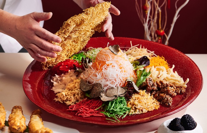 由行政主厨Jimmy Wong带领团队推出的一系列春节菜单,包括了Yun House Fortuity(每人RM1288)、Auspicious(每人RM888)以及Majestic(每人598)套餐,只要四人就能成行。在这里有不少出色的特色菜必须尝一尝,像是欧洲龙虾搭配辣椒碎配剁碎辣椒辣面、松茸干贝乌鸡花胶汤等,每份菜肴都是传统与创新的和谐融合。另外,不能错过大马华人新年的核心鱼生,Yun House还融入了黑松露、软壳蟹等食材,提升了惊喜度(鱼生需另外预定)。