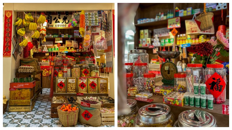 在这里你还可以找到一家传统的中药房,那里有个中滋补草药等供你选择;在这里还有一家裁缝店,勾起人们当代做新衣服时的氛围;这里还有模拟当代家中摆设的客厅,黑白电视机播放着经典影片,墙上挂着整齐的全家福,勾勒出一幅幅温馨的画面。