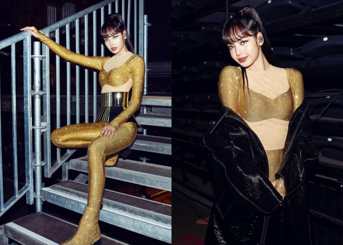 明显将事业版图往欧美,特别是法国发展的Lisa,近日刚结束了法国慈善晚宴,身穿的表演服居然不是来自Celine而是Loewe的金色闪亮紧身服,搭配金属腰封,前卫又亮眼。