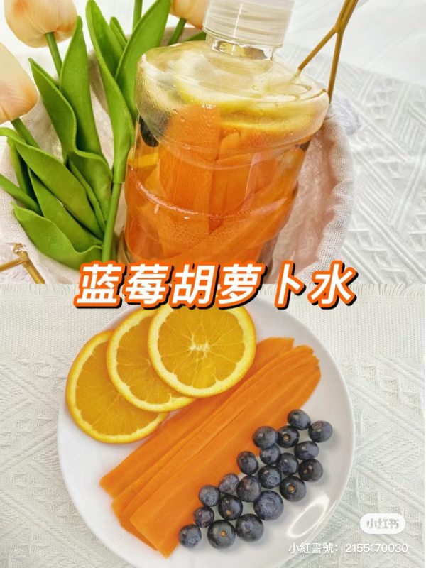 萝卜富含天然成分,具有抗氧化和抗炎作用,而膳食纤维有助于促进肠道健康;柠檬提供丰富的维生素C,缓解压力和疲劳感,同时具备抗氧化剂的功效;蓝莓则富含花青素,有助于对抗氧化应激,促进心血管健康。橙子的维生素C和柠檬酸能够增强免疫系统功能。