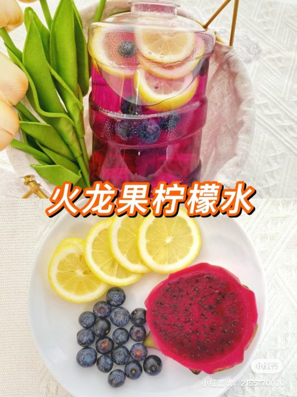 柠檬提供丰富的维生素C,有效促进新陈代谢和抗氧化作用,而火龙果富含天然纤维和抗氧化物质,有助于清除自由基,维护肌肤健康状态;蓝莓则提供花青素和纤维,对减脂有一定支持作用。