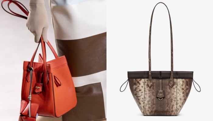 Origami一词是来自日本的折纸艺术,将纸张折成装饰品,Fendi的Origami手袋以复杂的结构组成,其中含有的8颗磁铁扣是手袋「变形」的关键,扣在一起时会呈现如几何花朵般的立体水桶包,只要打开就能变成扁平的梯形托特包,尽显手袋的多用途也彰显了品牌的俏皮玩心。