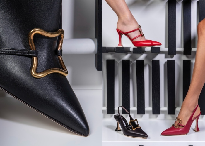 于是2024年的秋季鞋履中,他就选择了西班牙的传统舞蹈Flamenco 弗朗明戈舞蹈作为设计特色,像是富有表现力的手工皱褶细节,就是汲取舞衣领口的荷叶边,呼应了舞者的经典形象;而弯曲的网眼切割设计,则是模仿了20世纪中叶家具的线条,利用对比色的针脚、波浪纹的部分,给低跟鞋增添宛如艺术品的风采。
