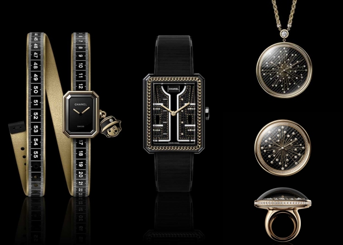 此外,还有皮尺表带版本的Première Ruban、黑斜纹软呢外套细节Boy·Friend Couture腕表、别针长项链表、针垫造型长项链表等,都呼应了Chanel女士过往佩戴订制服工具的模样,像是追溯品牌起源,也像是用一种方式诉说品牌的杰作与作品。