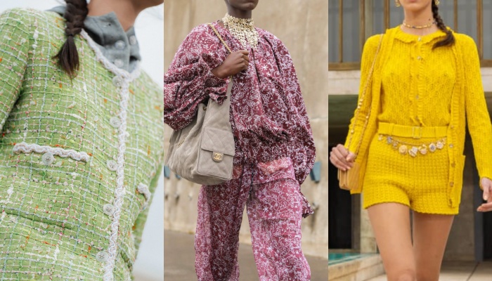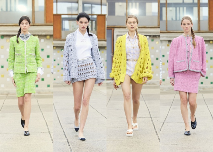 阳光、建筑、音乐和舞蹈:法国马赛拥有的自由感,都是Virginie Viard的早春系列里的风格符号。本季Chanel的度假系列服装完美呼应了马赛这座拥有的湛蓝大海、南法阳光的亮黄、大自然的绿意、热情的红色等,都运用在泳衣、潜水衣、开衩洋装、短裤、灯笼裤里。以刺绣描绘恋爱小鱼、华丽的渔网、贝壳、海星等细节点缀在服装上,还有用银光线条诠释水波纹和波浪,在衣裙里刻画出一段夏日美好时光。休闲的度假氛围则充分在象牙白蕾丝服装、针织外套、华夫格短裙、单宁套装里,满足度假的各种穿衣需求。
