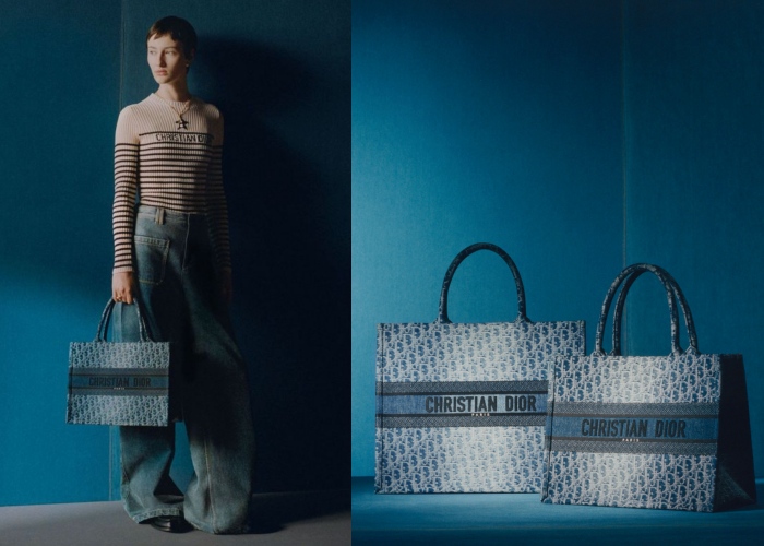 Dior女装创意总监Maria Grazia Chiuri带来全新的Denim Oblique系列更是本季不容忽视的包款新势力,特别做出了褪色仿旧效果、凸显标志性Oblique提花细节、用蓝白色渐层效果,创造出迷人的水洗复古视觉效果。该系列包括了品牌Dior Book Tote、Saddle、Toujours手提包、30Montaigne里的East-West款式等,致敬了Dior的大胆创意。