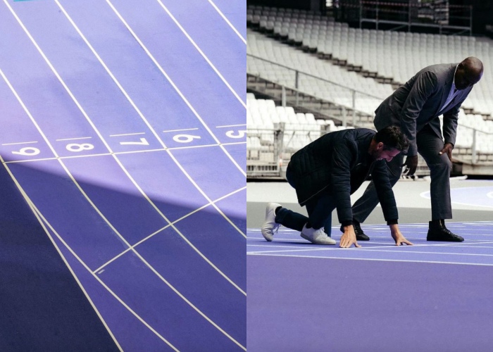 绝对不是为了浪漫那么肤浅的原因。制造商Mondo Sport Flooring 表示相比于过往的红色,在电视上、视觉上,紫色更能凸显运动员的存在,同时也是为了呼应2024 巴黎奥运会的主题色。