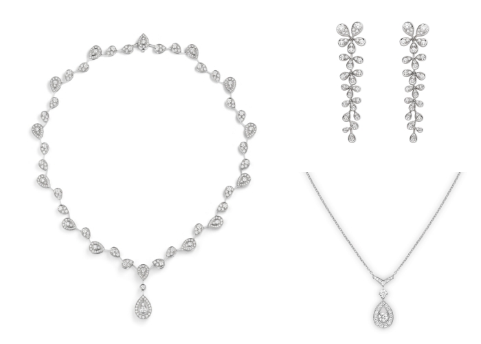 Joséphine Aigrette带有梨形切割美钻和V形鹭羽装饰的特点,带来灵动却不失尊贵的气息,简约轻巧的项链和耳环设计重现尊贵与美的设计,展现夫妻共同旅程里的成长以及不断变幻的光辉。