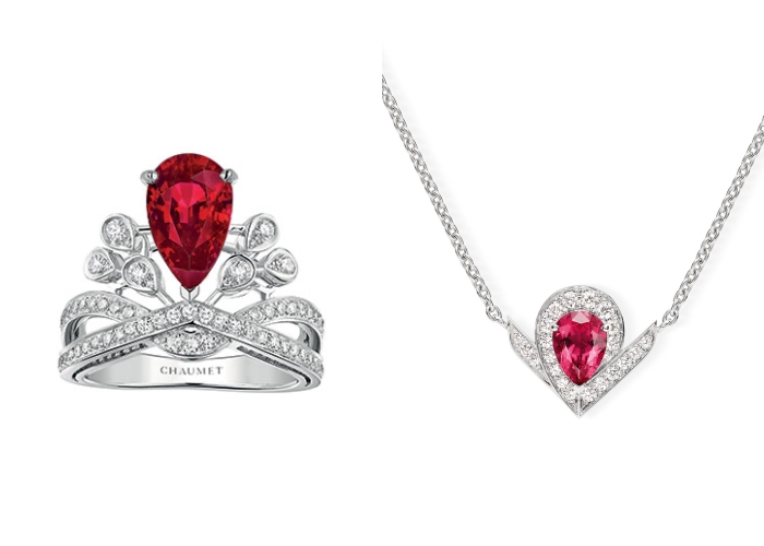 用红宝石纪念四十年的爱情再适合不过。红宝石独有的浓烈色彩,代表着热烈、不屈不饶的爱意。加上Chaumet的Joséphine Aigrette的独特设计,梨形切割红宝石与钻石的互相辉映,更显得高雅非凡。