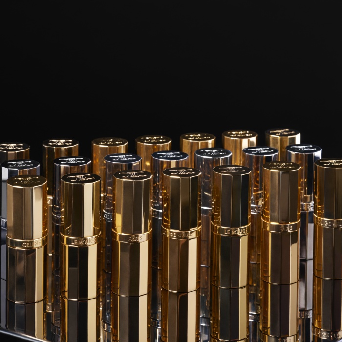 LE ROUGE CELINE口红唇膏拥有瞩目的金色金属雕刻外壳;润唇膏则装入银色的金属管身中,设计灵感源自18世纪末的法国古典主义,尤其是路易十四的黄金首饰以及装饰艺术的独特现代主义。