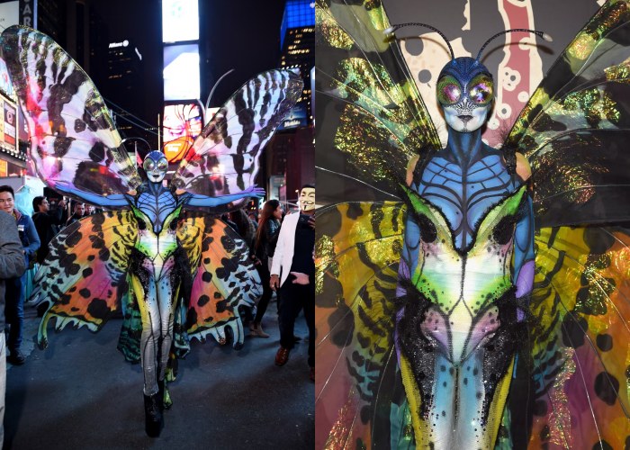 早期时候Heidi Klum的万圣节派对都会选在纽约举办,这一年她直接扮成蝴蝶人,还特别走进时代广场里。