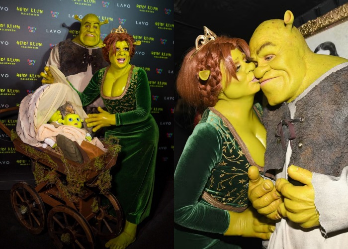 在2018年的时候,Heidi直接化身成了Shrek里头的Fiona公主,最有趣的是老公也是很给力的扮演成了Shrek。
