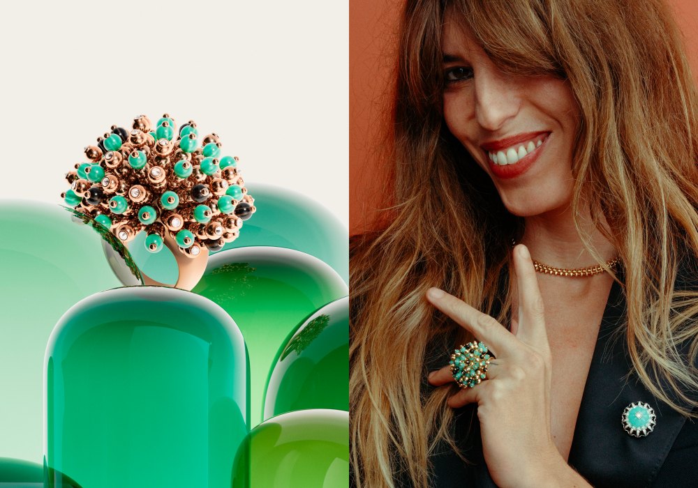 戒指点缀着彩色流苏,在举手头足间摇曳生姿,仔细听还会有发现之间碰撞出的清脆晶音。珠串均镶嵌了钻石和缟玛瑙,组成Cartier钟爱的黑、绿和白色组合,这也是品牌自20世纪初,就已经出现的配色组合。