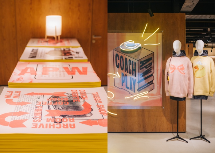 为庆祝Coach皮革工艺的传承以及APW印刷艺术的相结合,在入门处你可以期待看见独特的Coach Play APW标志,用经典「C」字母与APW印刷元素相结合。且受APW作为印刷厂的历史启发,还能看见精心设计且充满复古美感的海报,都在展示着Coach和APW的历史,而且还是可以带回家的收藏品!