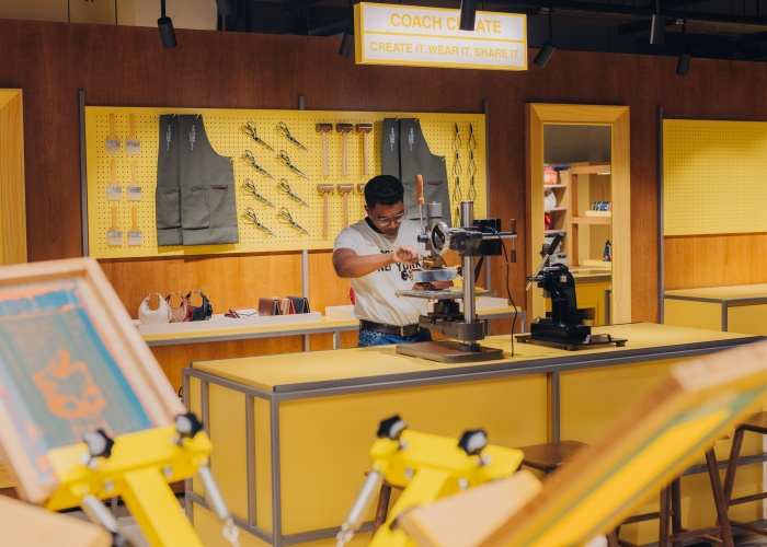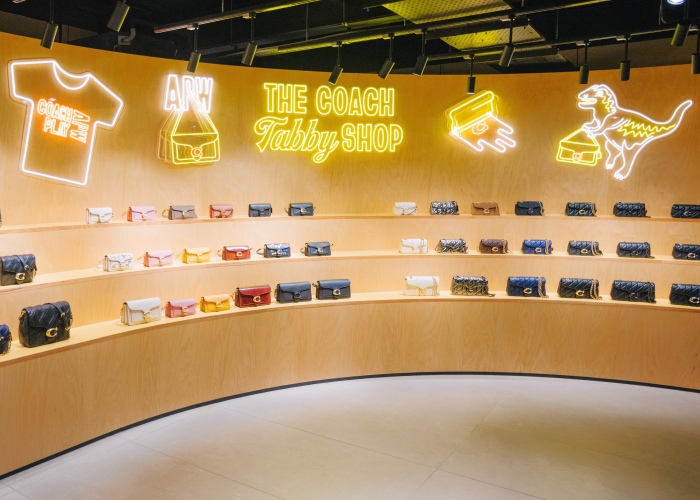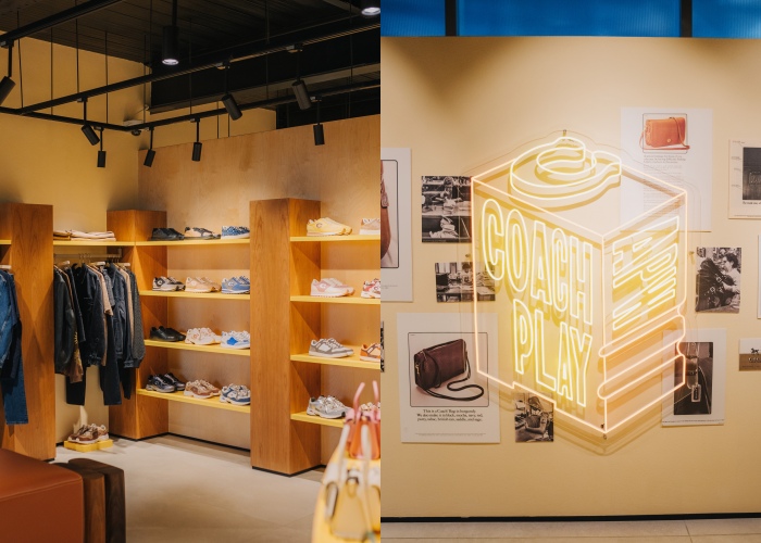 Coach Play APW概念店氛围灵感源自Coach的标志性视觉语言,包括让人联想到纽约的黄金暖色调、Coach的档案广告、致敬品牌传统的皮革工艺等,还有品牌吉祥物Rexy、吊牌等经典标志性设计都会出现,让大家可以在偌大、面积达3,280平方英尺的空间里,感受各种品牌精心设计的体验。