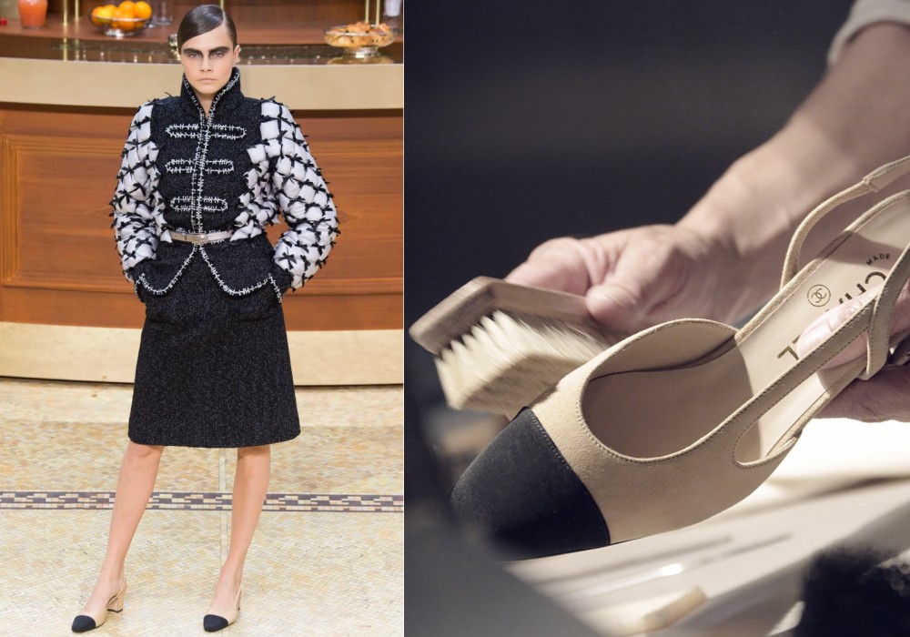 Chanel女士可真是特别喜欢从男装里找灵感,后脚踝细带设计的Slingback Chanel双色鞋,灵感就来自男装Derby shoes和牛津鞋,借鉴了男装鞋的双色源于并移师到女鞋上。