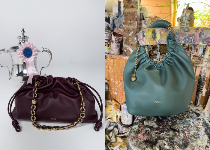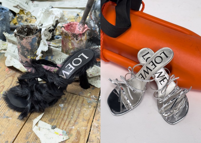 正所谓人靠衣装,这也是Loewe的2025早春想要传递出的信息,女装部分有连身裙搭配皮革外套、毛茸茸的皮草外衣,颇有华丽、阶级的意味;男装则散发浓厚的美国风格,特别是格纹衬衫、麂皮外套等,至于配件方面也有皮草高跟鞋、凉鞋、手袋等等,与人物角色相关的装饰搭配,视觉上古怪有趣,自成一格。