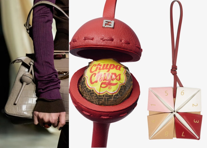要推荐近日话题最热的FENDI挂件,绝对是和Chupa Chups合作的棒棒糖收纳皮革挂件,而且还有5种颜色可选,由于是限量推行,大家想收藏可要快手快脚。另一个深得Q编欢心的Foretune Teller折纸吊饰,真的是刷一波大家的童年回忆,还展现了FENDI的皮革制作工艺,你说怎能不收呢?