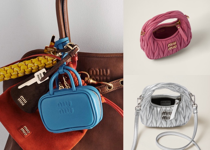 最近话题很盛的Miu Miu怎么可能不赶上这波潮流?品牌将自己的经典手袋像是照了缩小灯那样,化身小巧的原型迷你吊饰,小拉链、金属miu miu压纹和logo 都没有忘,实在有够可爱!