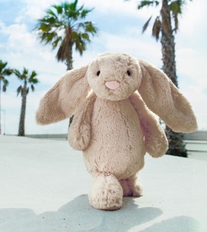 Jellycat旗下的经典明星娃娃第一名绝对是Bashful Bunny,下垂的长耳朵、短绒毛的身体、温柔的粉色,正是品牌一直想要传递出的「柔软与温暖」的理念。