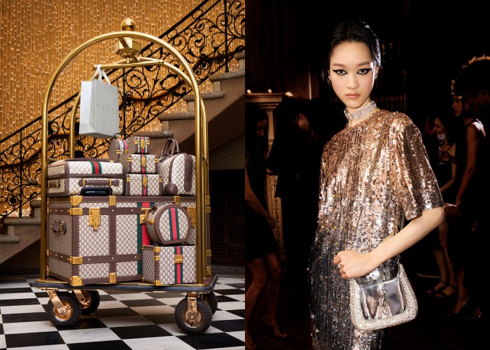这里仿佛将镜头拉回到Gucci的诞生由来,年轻的Guccio Gucci沉浸式Savoy酒店的搬运工,因为受到客人们举手投足的高贵气质、还有不同客人们的行李箱、皮带、帽盒等,这都让他想起了家乡Florence箱包店里的工艺,于是萌生了制作行李箱的念头,于是Gucci的初始就在这里发生了。