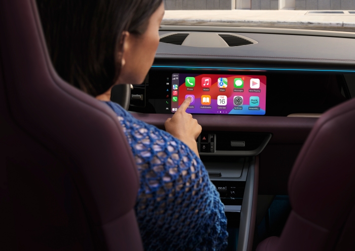 第二代Porsche Macan的仪表板由三个独立屏幕组成,包括12.6英寸的数字仪表盘、10.9英寸的中控屏幕和10.9英寸的副驾驶屏幕,另支持增强现实的抬头显示(HUD)。Macan也搭载基于Android Automative的全新一代信息娱乐系统,提供智能语音助手(Voice Pilot)和导航优化功能,同时也支持第三方应用程序安装,为驾驶者带来全面智能化的驾驶感受。