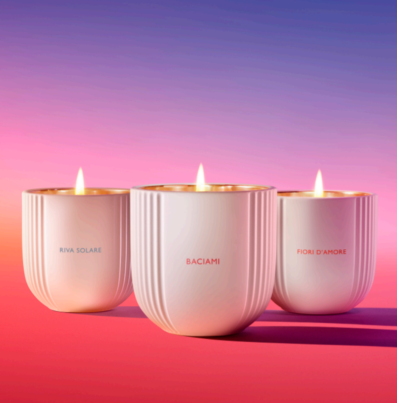 香氛设计尤为出色:Baciami 以栀子花和香草香调展现浓烈热情,仿佛一场浪漫邂逅;Fiori d’Amore 将玫瑰与覆盆子的甜美结合,为居室带来温馨浪漫的氛围;Riva Solare 则以柑橘和橙花的活力香调,重现地中海阳光下的悠闲假日。每款蜡烛都蕴含独特的情感与故事,是奢华生活的绝佳点缀。