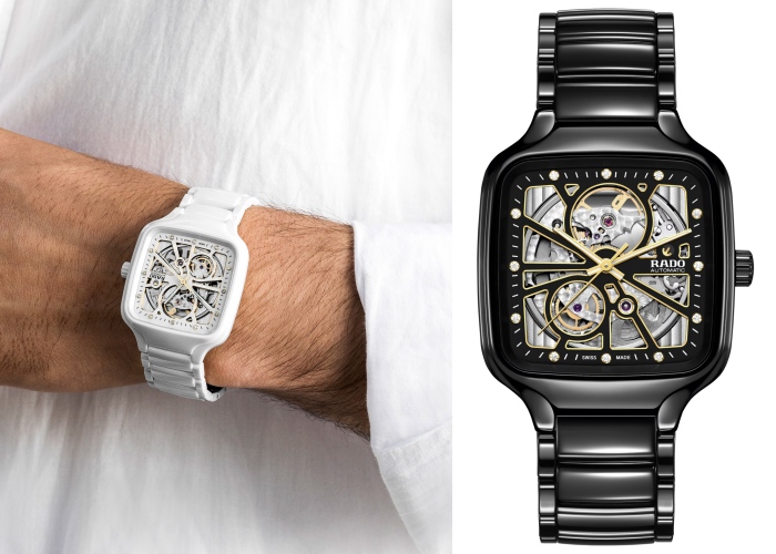 RADO的方形True Square上市以来就因为经典出众的外形深受喜欢,采用高科技陶瓷表壳和表链打造,带来流畅、轻盈舒适的佩戴体验,加上「开芯」系列配备了镂空表盘设计,一眼就能透过开芯视窗,一睹R734型自动机械机芯的律动风采。目前腕表提供38mm的表径尺寸,男女佩戴都不会出现太大或太小的尴尬情况。