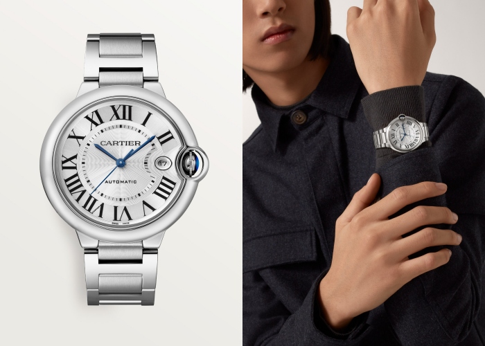 追求一个经典表盘设计的话,Cartier的蓝气球系列绝对值得排上许愿清单。最大特点在于表冠嵌入表壳,镶嵌一颗凸圆形蓝色宝石,赋予腕表独特的美感。表盘上有镀银扭索雕纹表盘,搭配罗马数字时标和剑形蓝钢指针,既独特也很有辨识度。Ballon Bleu de Cartier其实很晓得迎合各种手腕尺寸,所以有28mm、33mm、36mm、40mm、42mm等更多,但想和另一半共享40mm是个好选择。
