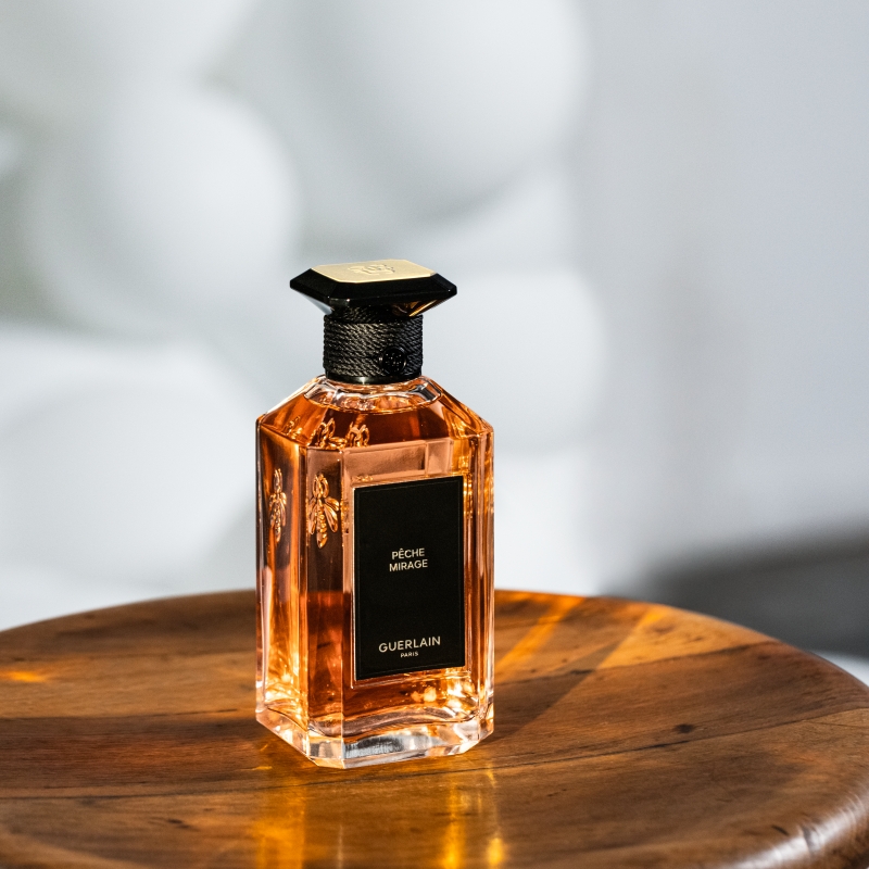 Guerlain 的 Pêche Mirage 是 L’Art et la Matière 系列的最新力作,将桃子的馥郁果香与皮革的深邃质感完美结合,打造出充满对比的香氛体验。
