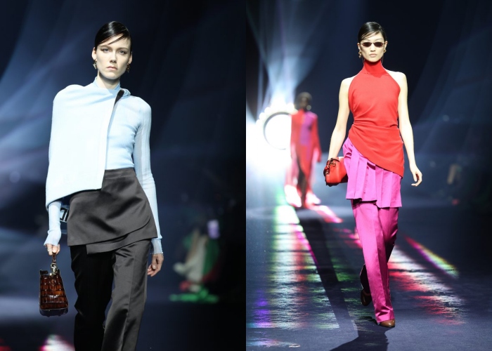另一种Skant的美学就是鲜明的裤子和裙子搭配组合,这设计呼应了近年回归的Y2K风格,像Fendi 还用上了引人瞩目的配色。