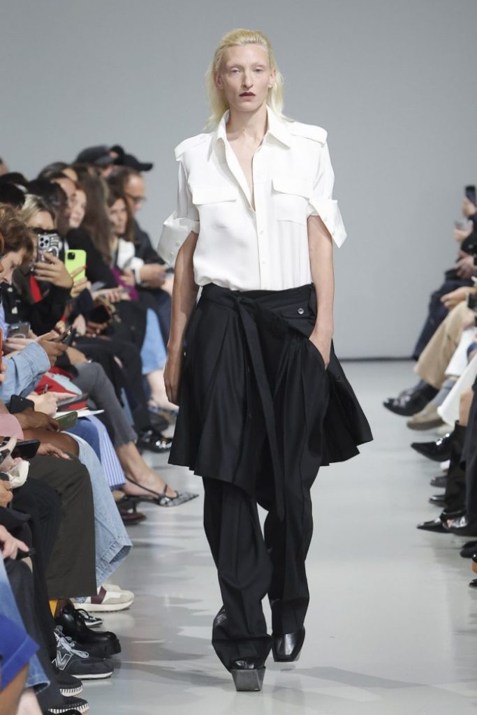 Peter Do 则是采用了百褶裙摆搭配宽松长裤设计,皱褶和系带设计给予了Skant丰富的结构和视觉效果,对于喜欢层次感穿搭的人,相信会对这单品一件钟情。