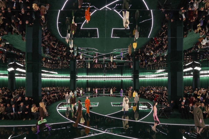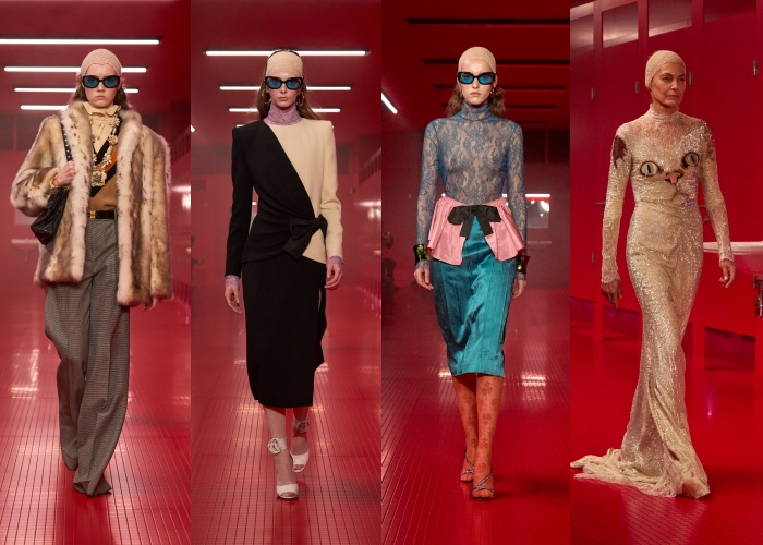 由Gucci内部设计团队接手,以复古经典与现代工艺融合为核心展开,从过去最具标志性的时代获得灵感,包括Sabato de Sarno 的复古方正轮廓、Frida Giannini的优雅古典、Tom Ford的性感,还有Alessandro Michele 的极繁主义,在这一季中展现了品牌历史长河里的多重面貌。