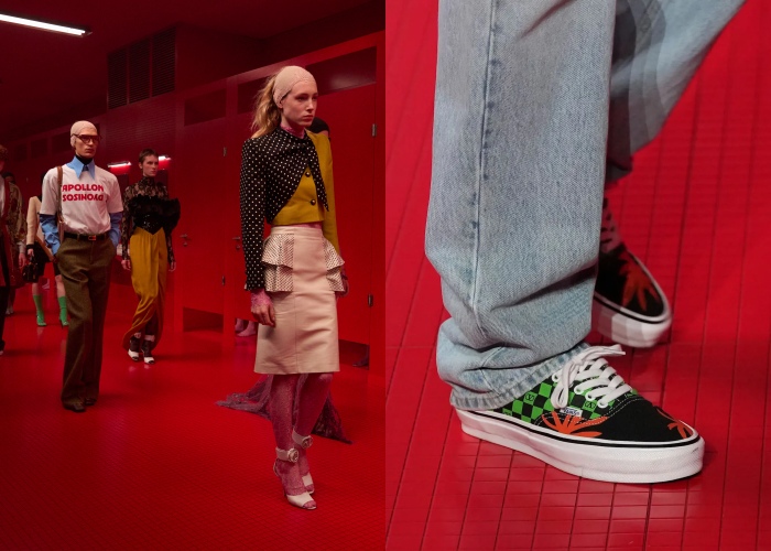 尤其蕾丝、珠绣和刺绣等细节,都是堆叠出该系列精致工艺语言的关键。另一个秀场亮点,便是与潮牌鞋履Vans合作推出联名感,选择经典Authentic滑板鞋,将Vans的标志性期盼和Valentino的V字logo结合,既街头又充满时尚感,相信很快在潮人们的脚上看到该作品。