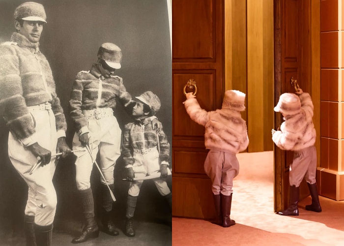 Silvia对品牌致敬的方式,是巧妙地穿梭不同年代的时尚,像1966年她梦寐以求的大衣;1980年代夸张肩膀设计的洋装等,这些时间留下的痕迹都是滋养她创新的基础。由于Kim Jones的离开,这一季会是男女联合的时装秀,难得可以一窥FENDI对性别流动性的诠释,从女装渐层针织毛衣、羊绒Polo衫、斜纹貂皮大衣;到男装的非对称燕尾服翻领细节、皮草披肩、柠檬色短大衣,都展现了性别之间的时尚共鸣。