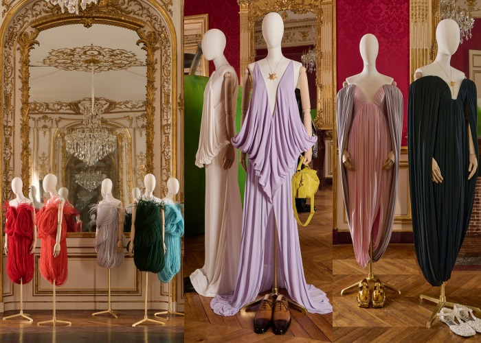作为Jonathan Anderson离开LOEWE前的秀场,是静态但充满力量的。没有模特、没有动态,Jonathan Anderson本季作品以「灵感剪贴簿 Scrapbook」为题,从20世纪德国艺术夫妇Josef&Anni Albers的编制和色块画作里去的灵感,将新旧元素、拼接、错视(trompe l’oeil)、比例变化为作品注入超现实色彩,并选择了于18世纪落成的Hôtel de Maisons,在这里打造了一个主题空间,展出LOEWE的艺术收藏,当然还有成衣和手袋作品。