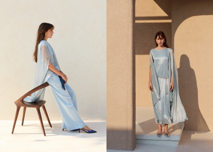Maje全新Ramadan Capsule系列以迪拜当代别墅作为背景,透过清新、现代的视角捕捉女性气质的精髓。在建筑背景下,突显了服装结合流畅剪裁与华丽光泽,为斋月这个特别时刻打造迷人、散发松弛的气息。本季亮点包括金色闪耀的缎面披肩礼服,为节庆时光增添耀眼;还有连身裤装,轻松散发自信氛围,让优雅与率性兼具,另外还有贴合身形与俐落衣领的皱褶设计长裙,诠释低调魅力。另外,还有多款编织细节、镂空、流苏、亮片点缀细节的手袋和鞋履,每件单品都是让人能以最光彩夺目的形式庆祝斋月。