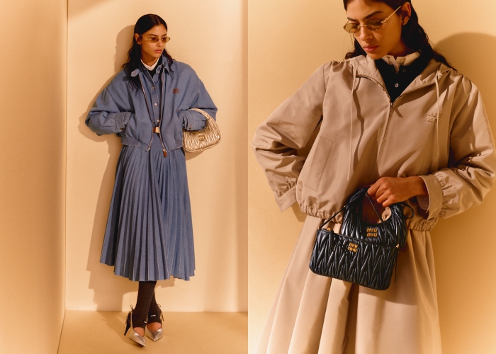 为庆祝斋月和开斋节的到来,Miu Miu推出了甄选系列,包括成衣、手袋、鞋履和配饰。由阿拉伯裔模特Rania Benchegra入镜演绎,在阳光斑驳的静谧空间中,引人深思与内省。服装面料体现了Miu Miu品牌精神中的矛盾对立。白色、米色、灰色、靛蓝和藏青等颜色的美丽诺羊毛、棉质府绸和丹宁牛仔等面料,透过水洗和做旧展现鲜明度。另外还有Miu Wander手袋、小巧化妆盒及小包增添亮点。尖头细跟设计的露跟高跟鞋以黑色、红色和白色漆面皮革呈现,为这个庆祝气质展现焕然一新的气息。
